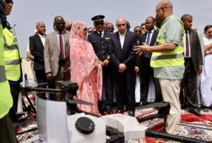 وتلقى فخامته شروحا فنية قدمتھا معالي وزيرة البيئة والتنمية المستدامة السيدة مسعودة بنت بحام ولد محمد لغظف تضمنت خصوصية وطبيعة التدخلات.